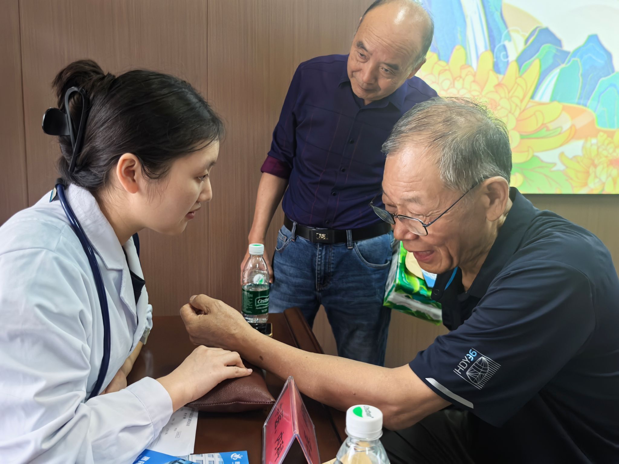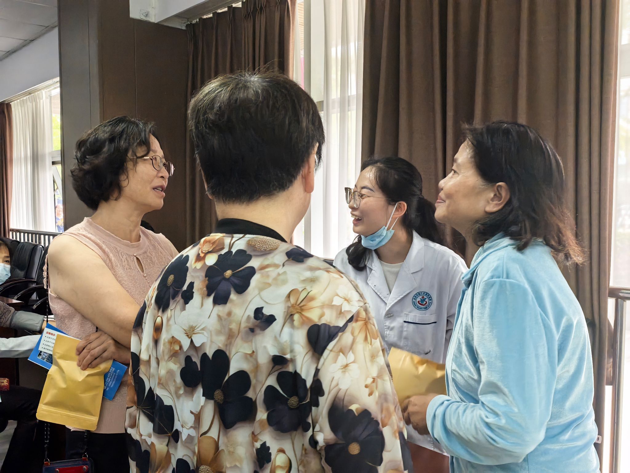讲座结束后,义诊活动随即展开。医院派出口腔健康、颈腰肩椎疼痛和中医内科三个专科医生团队,为老同志们提供面对面的健康咨询。大家围绕亚健康调理、膝盖疼痛、胃炎、糖尿病、高血压、腰椎痛等常见问题有序问诊。中医内科医生根据个体情况现场开具中药处方,让老同志们倍感安心。活动现场还发放了足疗中药包和超声骨密度免费测试卡,进一步延伸了健康服务的实效。