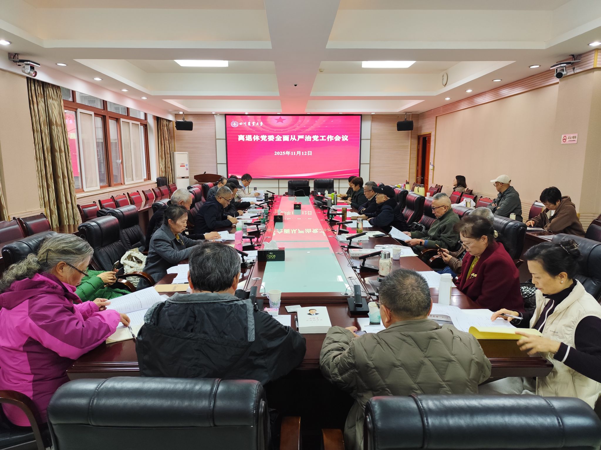 11月12日下午,离退休党委在都江堰校区召开全面从严治党工作会议。会议深入学习贯彻习近平总书记关于全面从严治党的重要论述和党的二十届四中全会精神,系统总结前期工作,分析当前面临的新形势与新情况,并结合离退休工作实际,研究部署下一阶段重点任务,为提升离退休服务管理质效提供坚强保障。