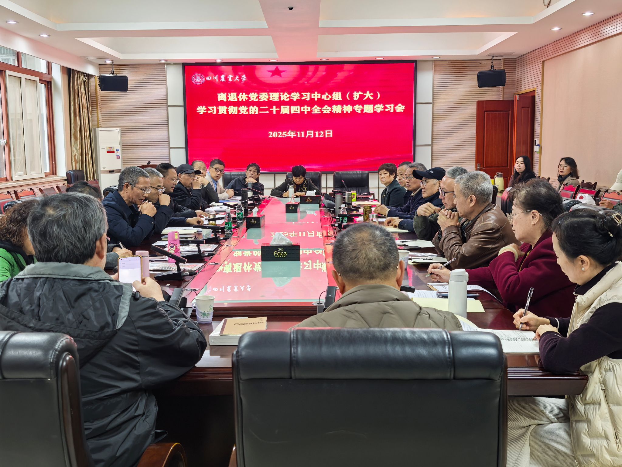 11月12日,离退休党委在都江堰校区召开党委理论学习中心组(扩大)学习贯彻党的二十届四中全会精神专题学习会。都江堰校区综合管理办公室负责人,离退休党委委员、纪委委员,21个党支部负责人,三校区离退休工作人员参加会议。