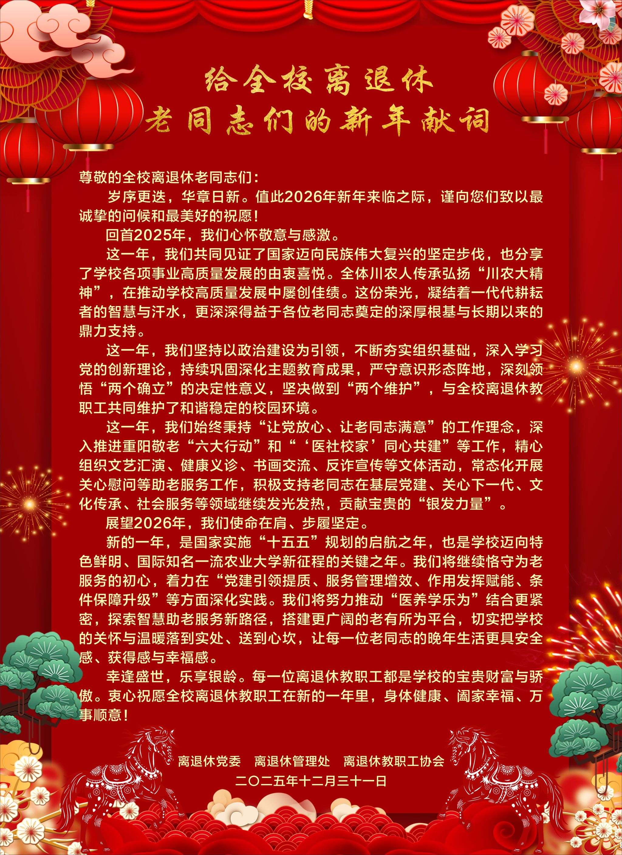 给全校离退休老同志的新年献词