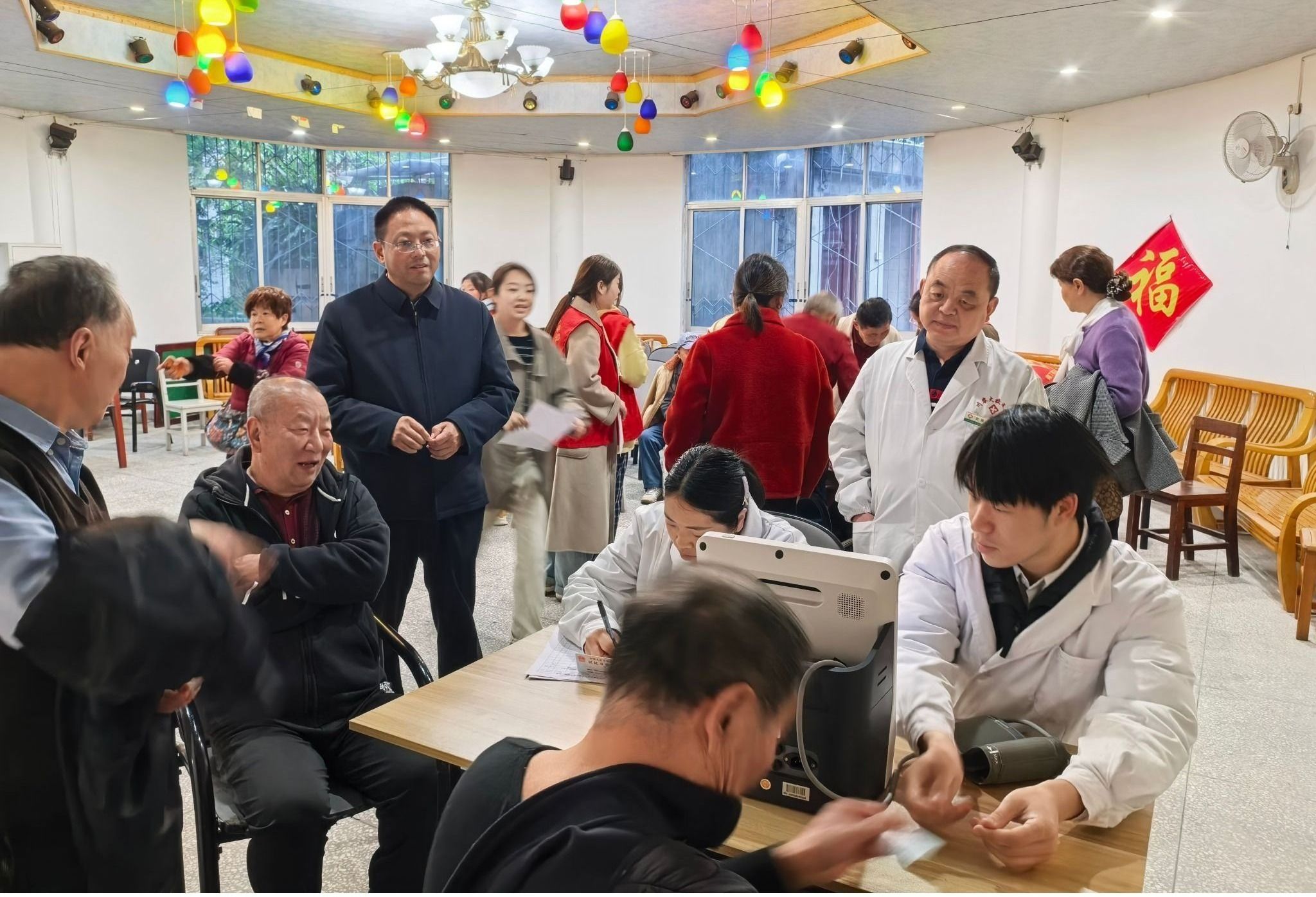为切实关爱老同志身心健康,活动现场邀请雅安职业技术学院护理学院专业师生团队,严格依据国家标准,通过询问、观察及互动等方式,对老同志们的日常生活活动能力、精神状态、感知觉与沟通能力以及社会参与度进行综合评估。同时,雅安职业技术学院附属医院医护人员为老同志提供血糖、血压检测等基础健康检查服务。